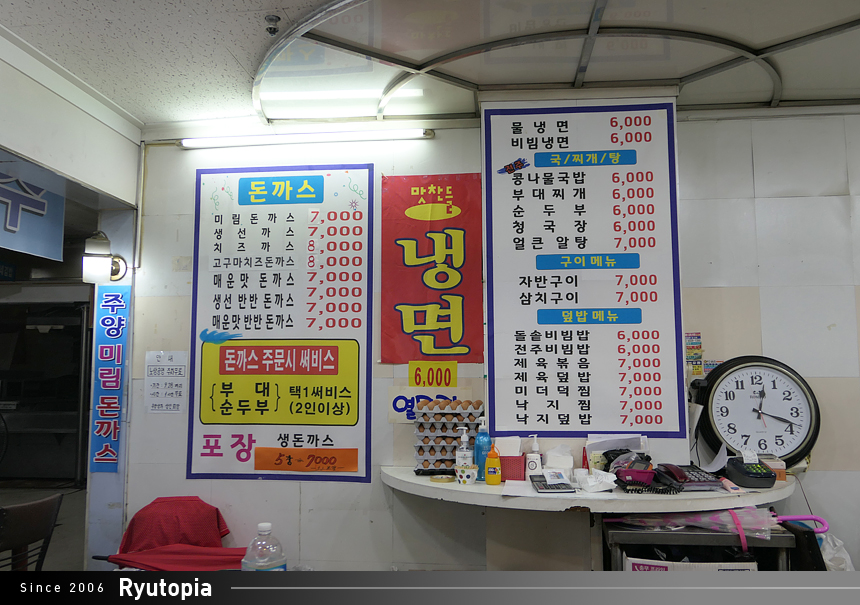 미림돈까스의 메뉴판. 돈까스 이외에도 다른 찌개류와 덮밥, 그리고 생선구이 메뉴가 있긴 합니다만