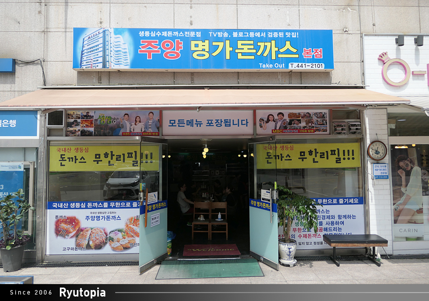 주양 명가돈까스는 주양쇼핑 식당가 돈까스 집 중에서 재건축이 결정된 이후 가장 빨리 주양쇼핑을 떠난 가게로