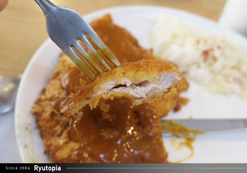 바로 튀긴 돈까스 위에 소스를 뿌려주기 때문에 뜨겁고 바삭하게 나오는 게 모든 주양돈까스 매장의 공통된 장점.