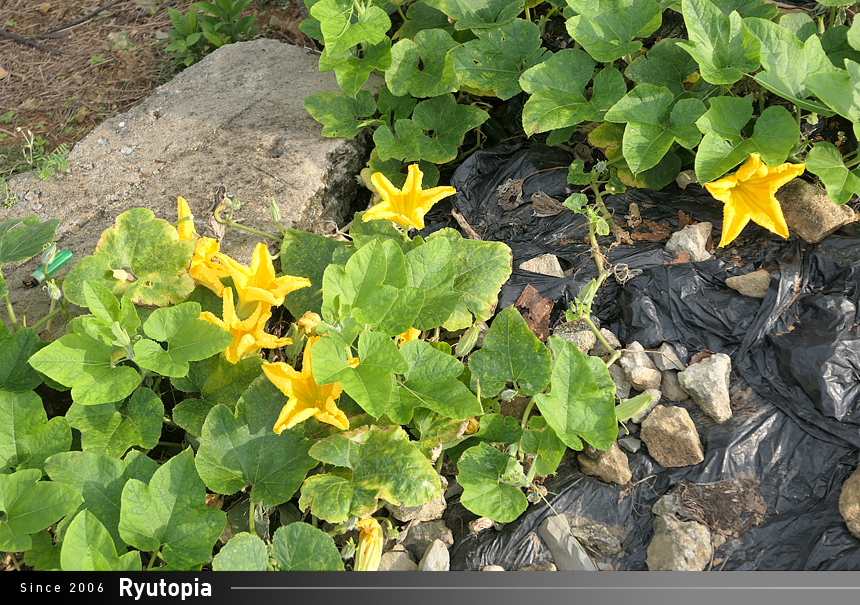 호박꽃이 꽤 예쁘게 피었습니다. 아직 호박 열매가 영글진 않았지만요.