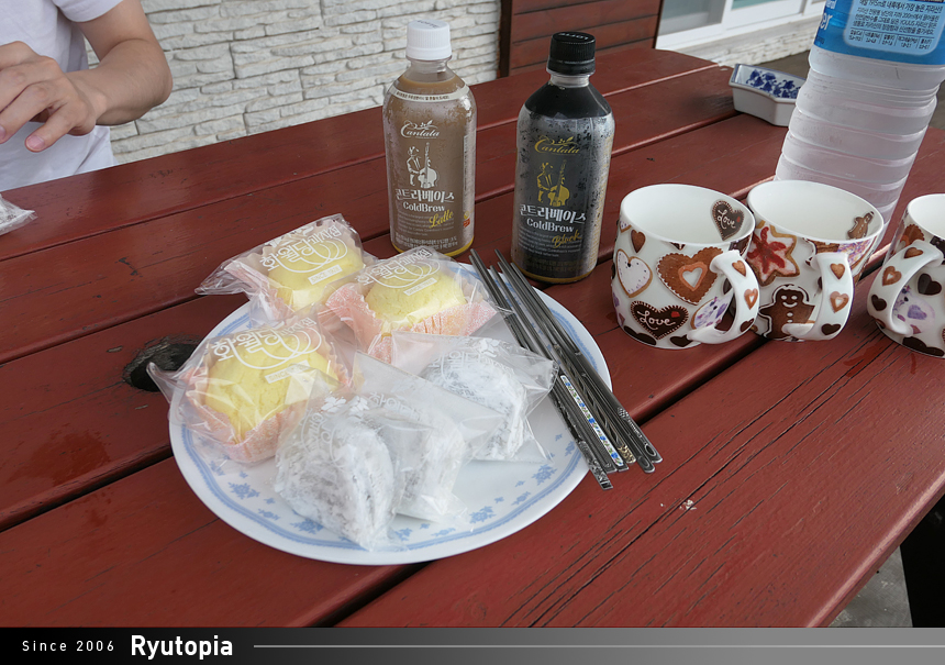 특별히 거창한 아침을 먹는 건 아니고 그냥 전날에 산 화월당과자점의 볼카스테라와 찹쌀떡, 그리고 커피로 가벼운 아침.