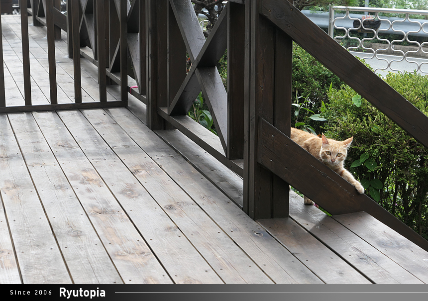 어디서 왔는지 모를 치즈냥이 한 마리가 은근슬쩍 우리 발코니 앞으로 슬금슬금 다가왔습니다.