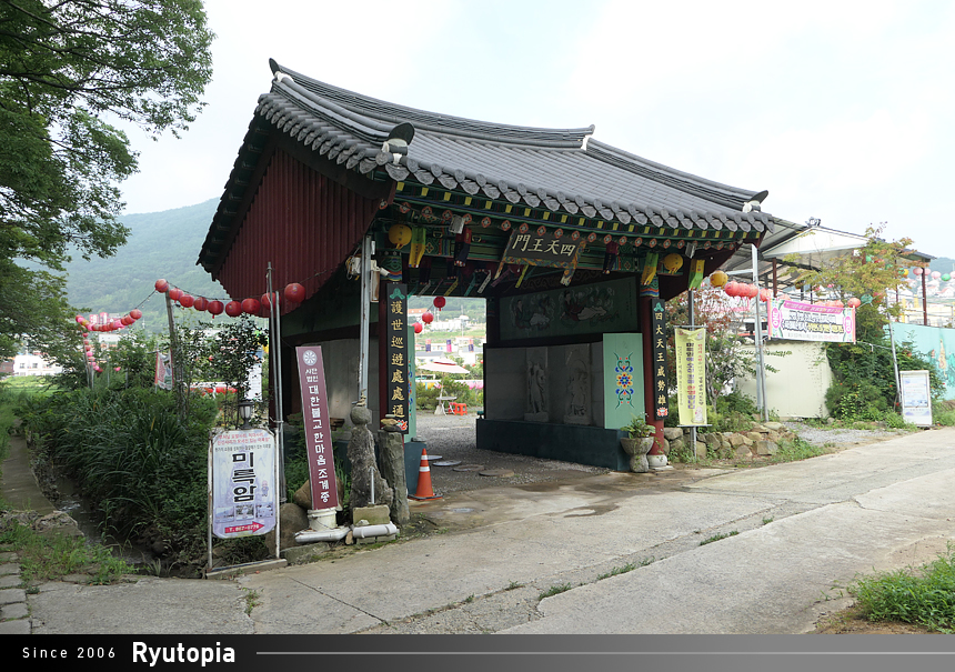 '사천왕문' 현판이 달린 미륵암의 출입문.