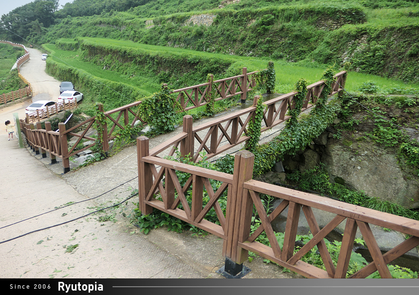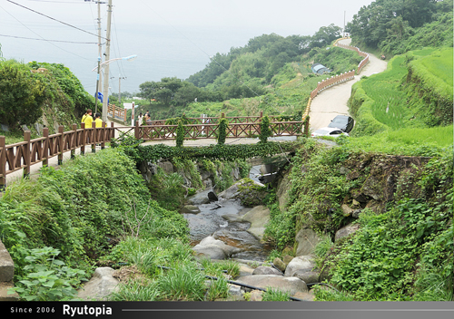마을로 내려가는 메인 도로 오른편엔 계단식 논과 함께 작게 개천이 흐르고 있습니다.