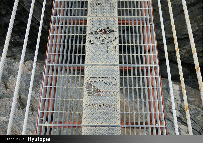 배수로 위 철판처럼 절벽 아래 바닥이 그대로 보이는 철제 구름다리.