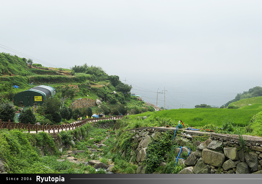저 언덕 아래, 계단식의 논과 함께 바닷가를 따라 형성되어 있는 마을이 남해 '다랭이마을' 입니다.