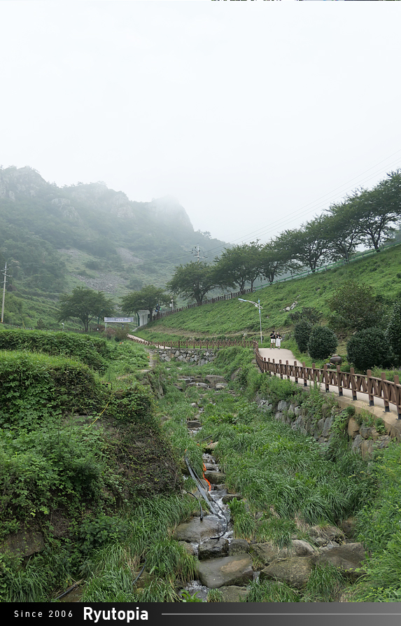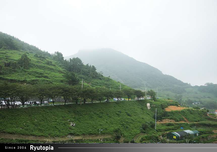 이른 아침, 잔뜩 흐린 날씨에 안개가 자욱하게 끼어있는 산의 모습이 약간 신비하게 느껴지는군요.