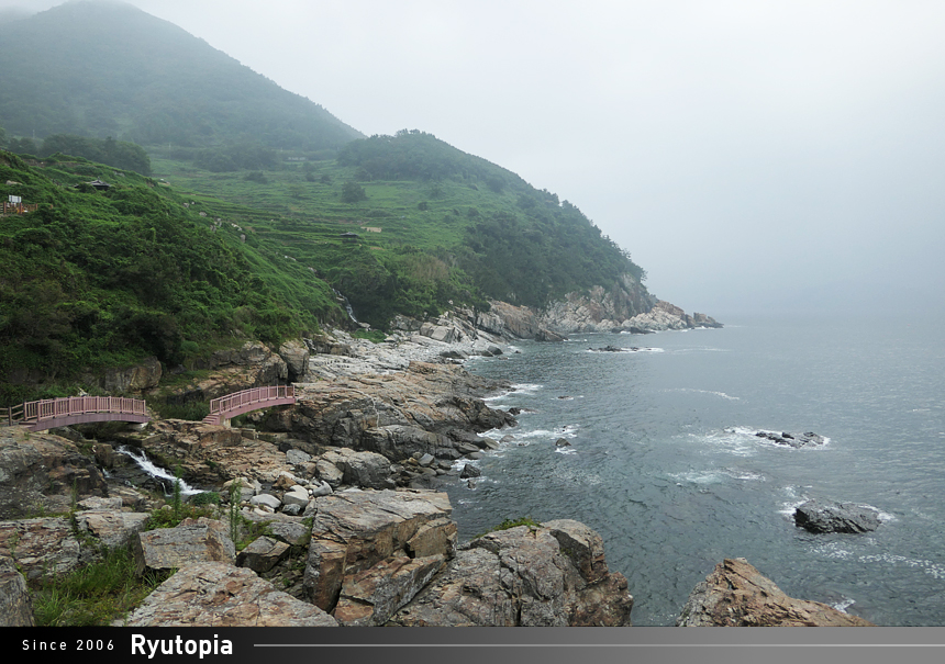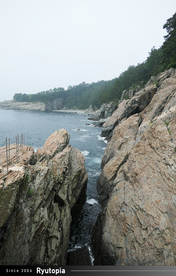 바위 아래 바닷가까지 직접 내려갈 순 없고, 관광객이 갈 수 있는 길은 통로와 함께 난간이 설치되어 있습니다.