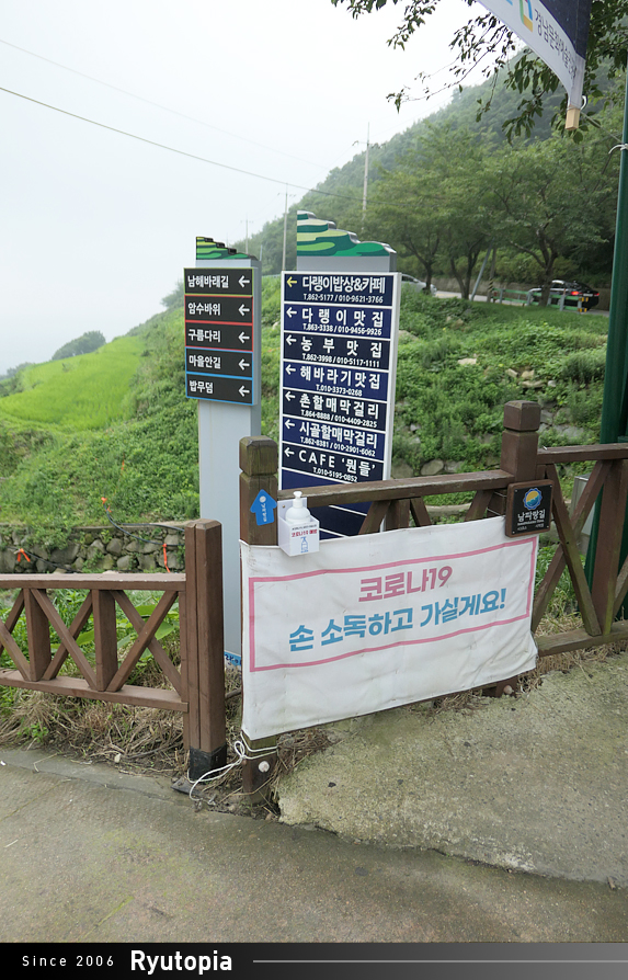 그리고 마을 입구엔 손 소독을 위한 세정제가 비치되어 있었습니다.