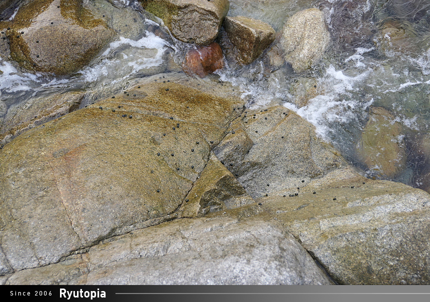 바위 곳곳에 붙어있는 고둥.