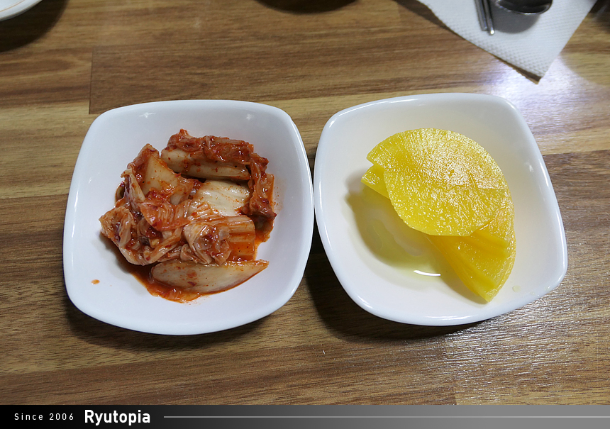 기본 반찬으로는 배추김치, 그리고 단무지 두 가지가 제공.
