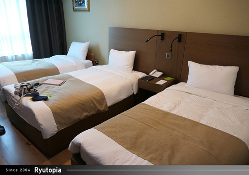 객실 내에는 트윈 베드(침대)와 함께 엑스트라 베드 하나가 더 놓여져 3인이 잘 수 있게 준비되어 있었습니다.