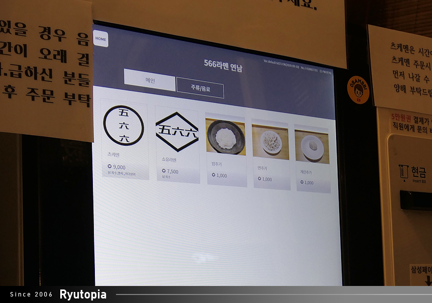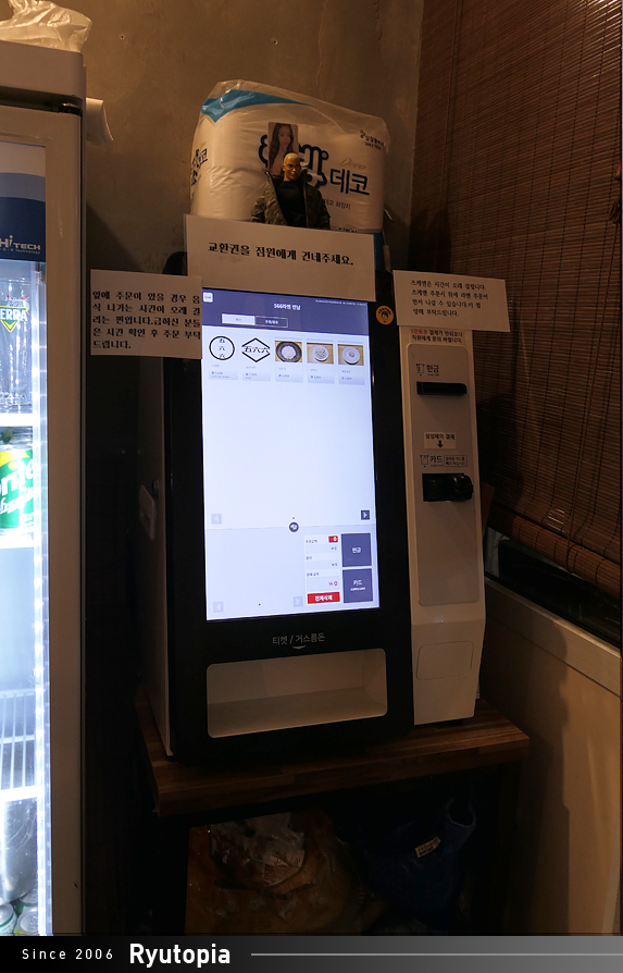 매장 안으로 들어오면 바로 오른편에 식권 자판기가 있어 여기서 선결제한 뒤 자리에 앉으면 됩니다.