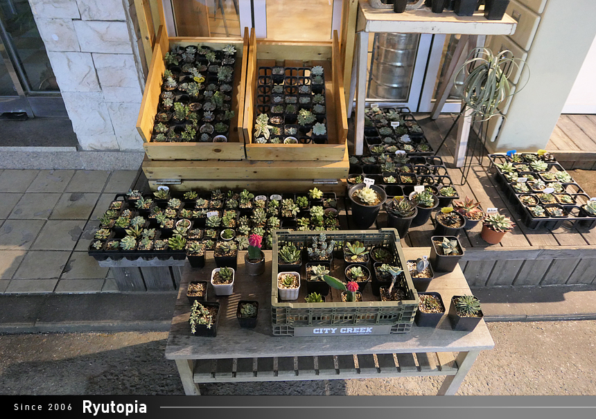 가게 입구에 조그만 화분이 엄청 많이 놓여 있었습니다.