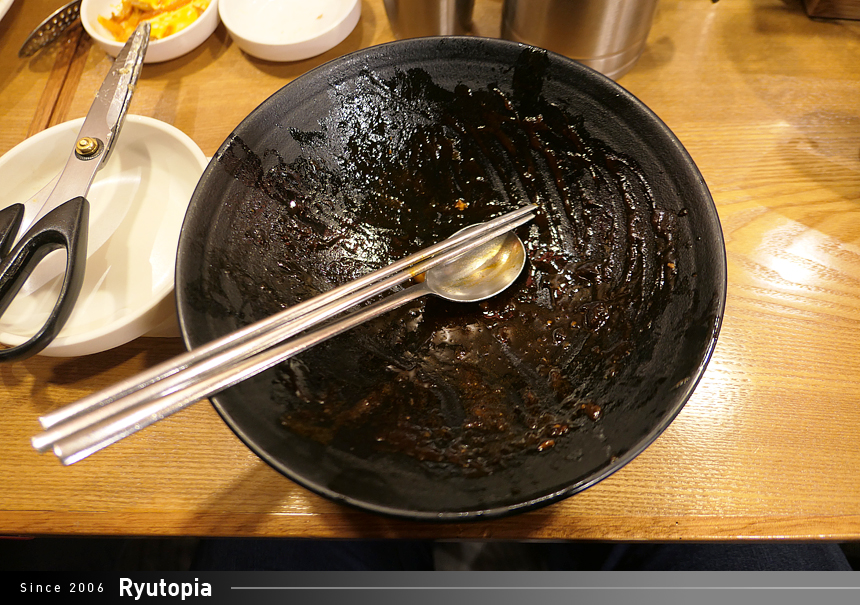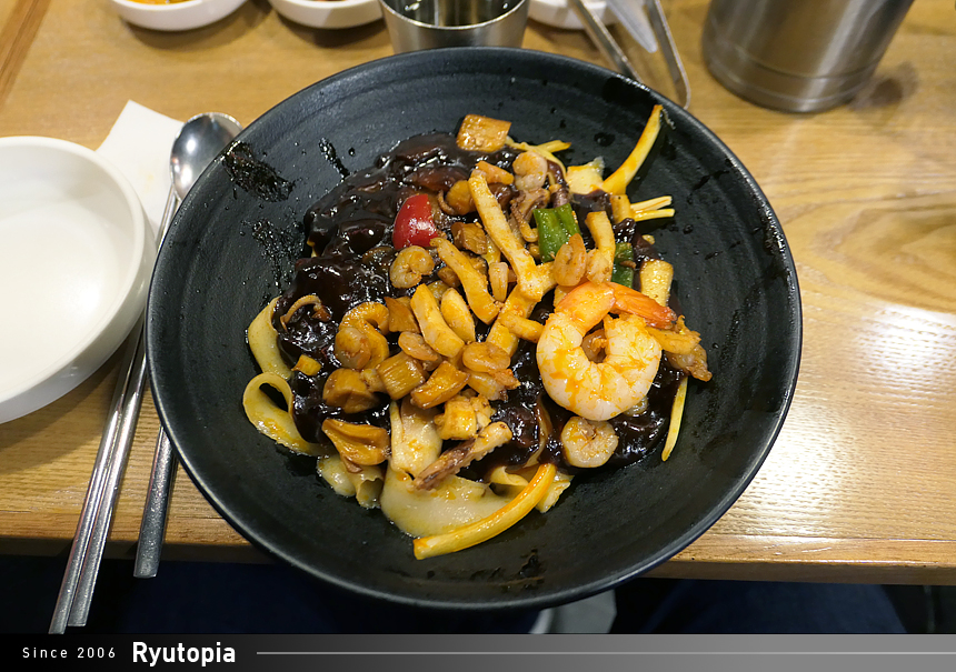 시각적인 즐거움(?)을 위해서인지 짜장 소스에 해산물과 고기를 섞지 않고 따로 삶아 고명처럼 얹어내었는데
