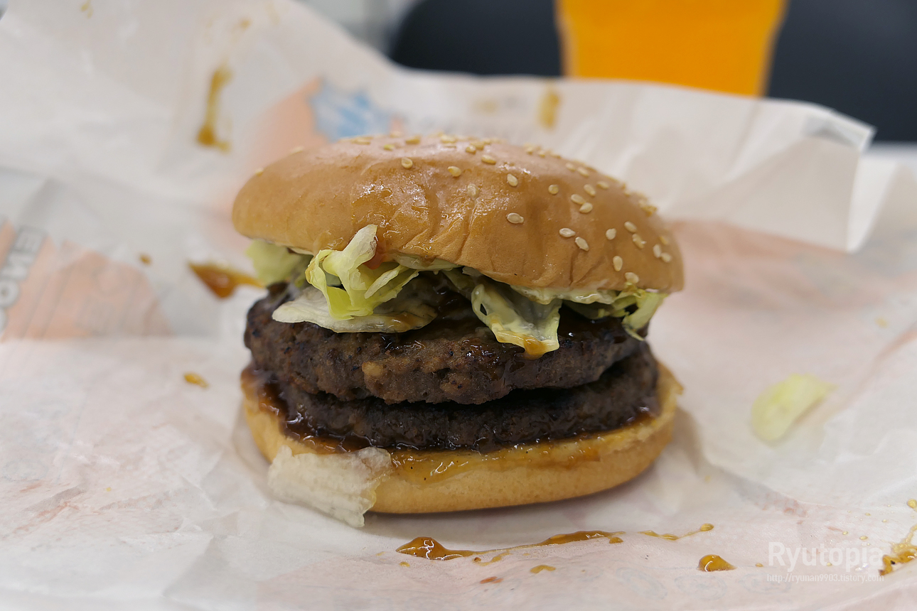 내용 구성은 단순하지만 패티 한 장 추가 덕에 볼륨감이 훨씬 좋아진 것을 체감할 수 있습니다.