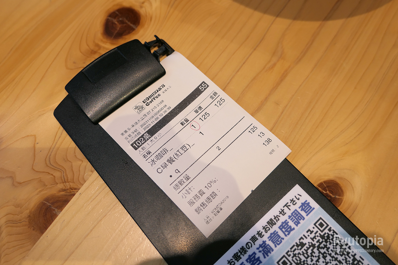 그런데 굳이 이렇게까지 서둘러서 간 이유는... 코메다 커피의 아침 메뉴인 '모닝 서비스' 가 막 끝나갈 시간이기 때문이었다.