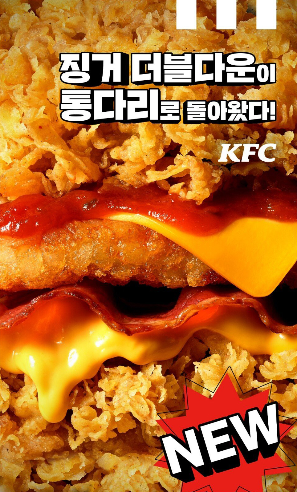 '징거더블다운 통다리' 의 외관. 뭐 징거더블다운 시리즈의 파괴적인 외관은 굳이 더 말할 필요가 있을까요...ㅋㅋ