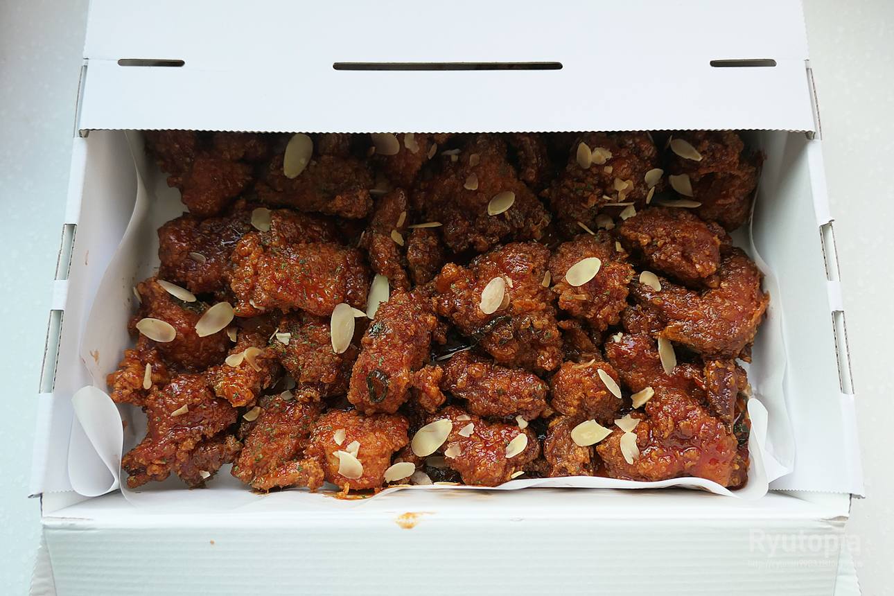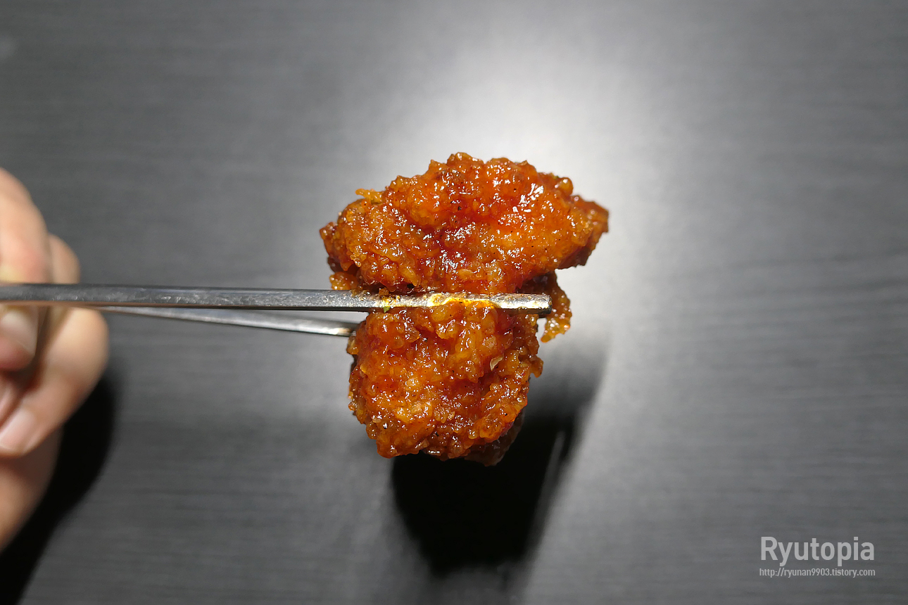 뭐랄까 '모범적인 닭강정의 정석' 을 보는 듯한 맛인데 진짜 호불호 별로 안 타고 누구나 좋아할 만한 맛이라는 게 큰 강점인듯.