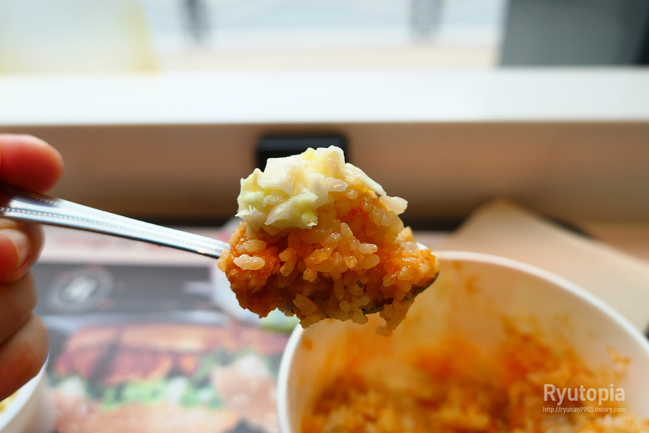 코울슬로의 새콤아삭함이 밥과 어우러지면서 더 맛있어집니다. 뭔가 이렇게 하니 맛이 완성된다는 느낌이 확실히 있어요.