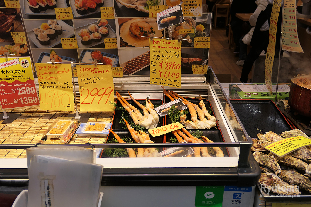 배가 불러 무언가를 사 먹진 못했지만, 어쨌든 처음 가 보는 쿠로몬 시장은 시장 구경하기 좋아하는 사람들이라면 꽤 반길 듯 하다.