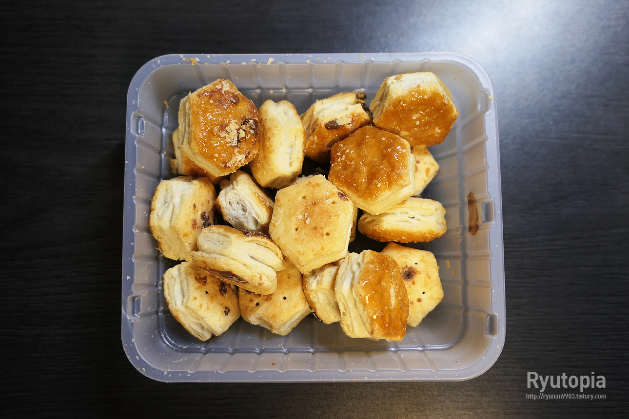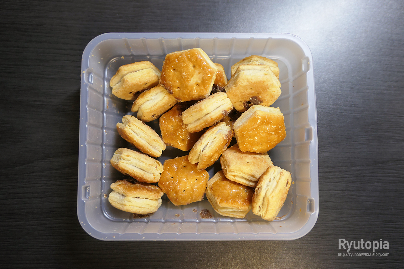 파이 부분이 좀 더 불규칙하게 부서지는 느낌이 있어, 약간 가루가 날리긴 하는데 맛은 일본의 것과 거의 완전히 동일.