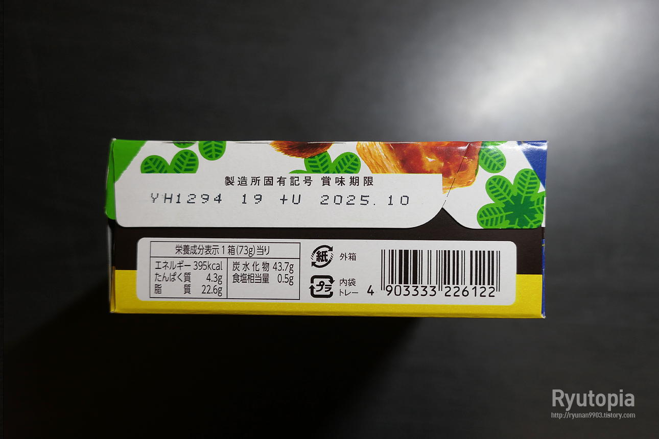 일본 제품의 측면 영양성분표. 한 곽(73g) 당 열량은 395kcal입니다.