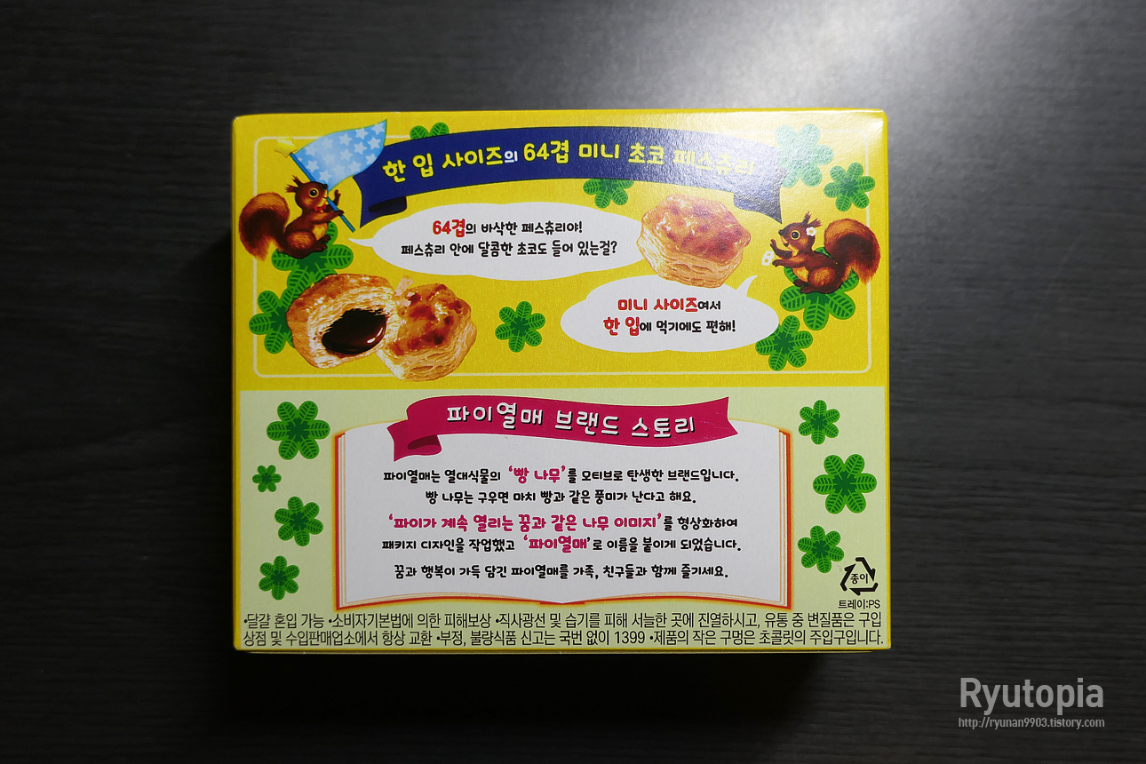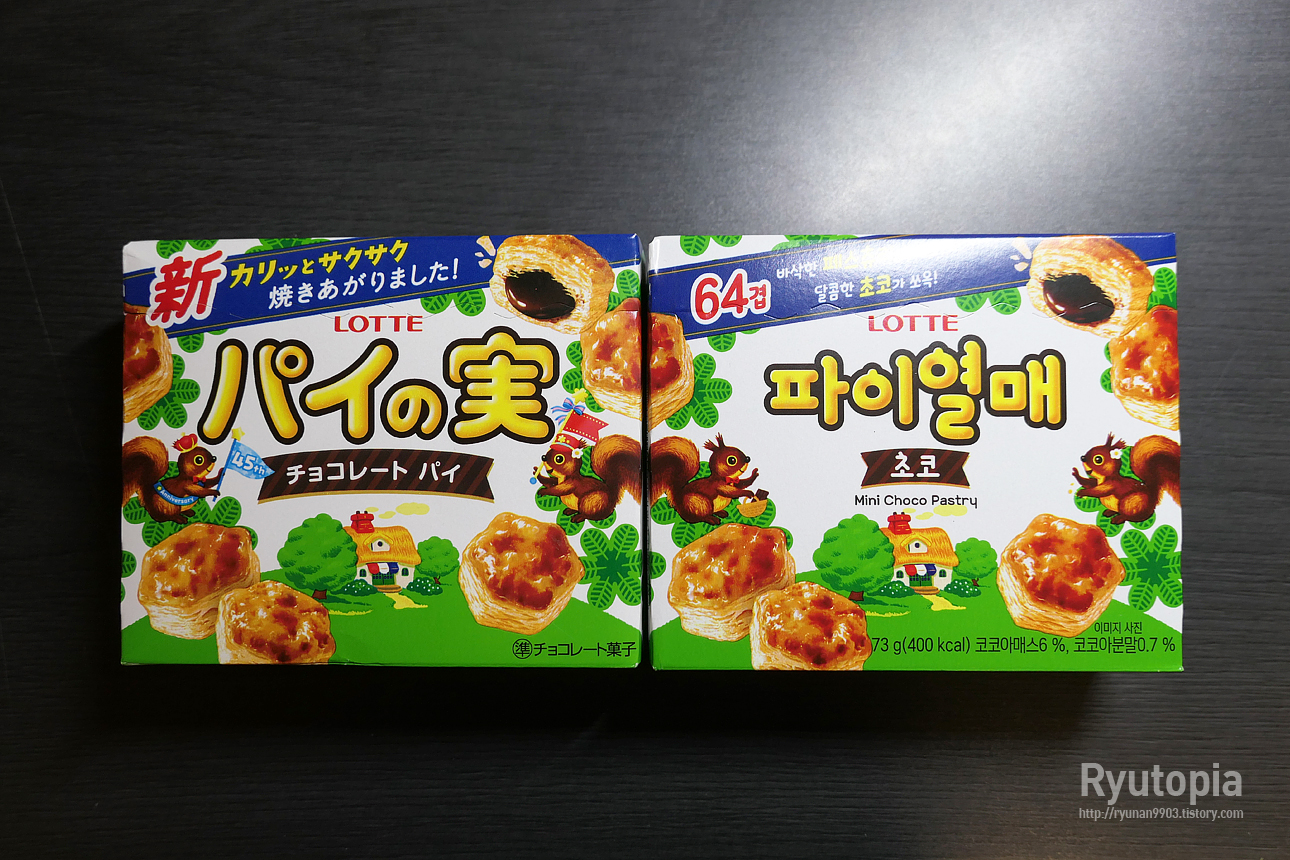이 때문에 대한민국 파이열매가 일본에 비해 식감이나 맛이 훨씬 떨어진다고 느낄 수도... 있겠으나, 사실 먹어보면 별 차이 없어요.
