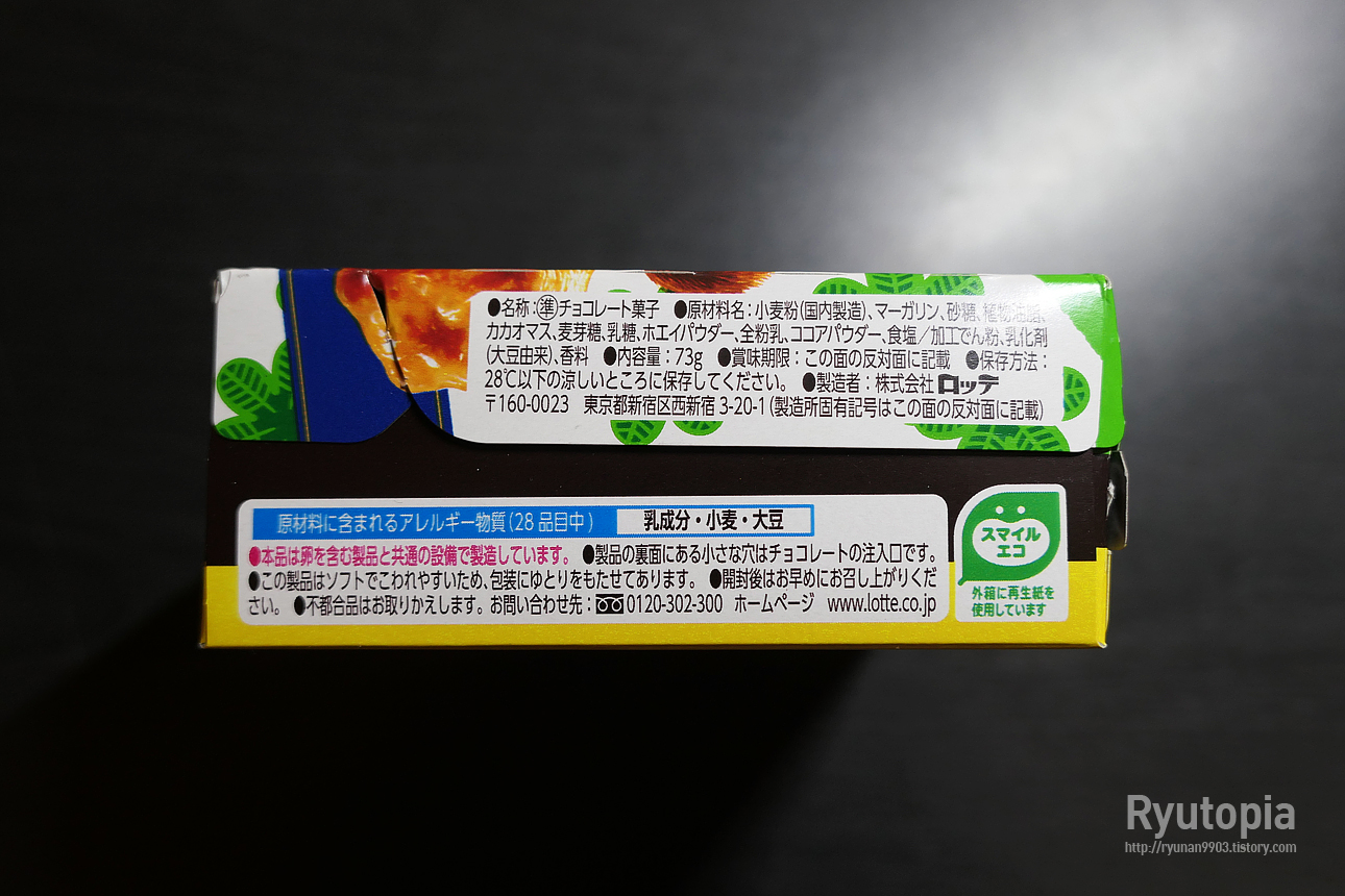 박스 개봉하는 띠지 안쪽 문구가 일본은 '45주년 감사합니다', 대한민국은 '달콤하고 바삭한 미니 초코 페스츄리'