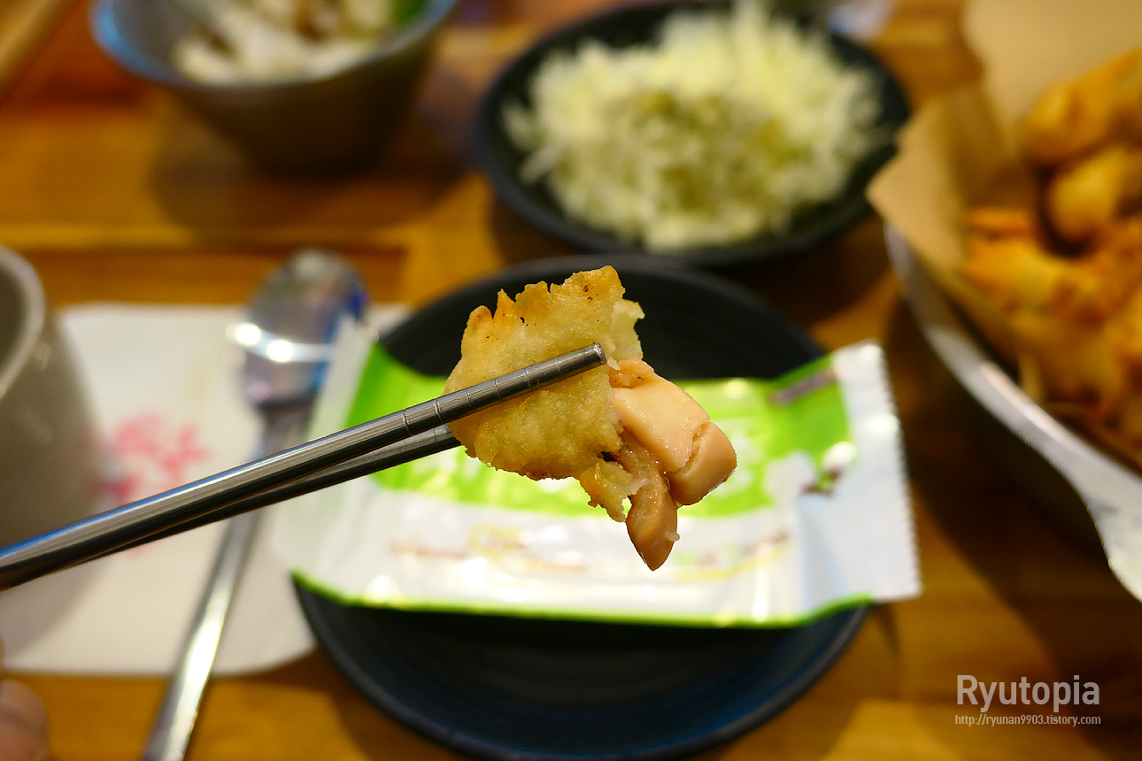 다만 길쭉하게 튀겨낸 오징어가 아닌 잘게 썬 오징어를 반죽 입혀 튀겨낸 거라 튀김 한 개의 크기가 딱 한 입 크기로 조그마함.