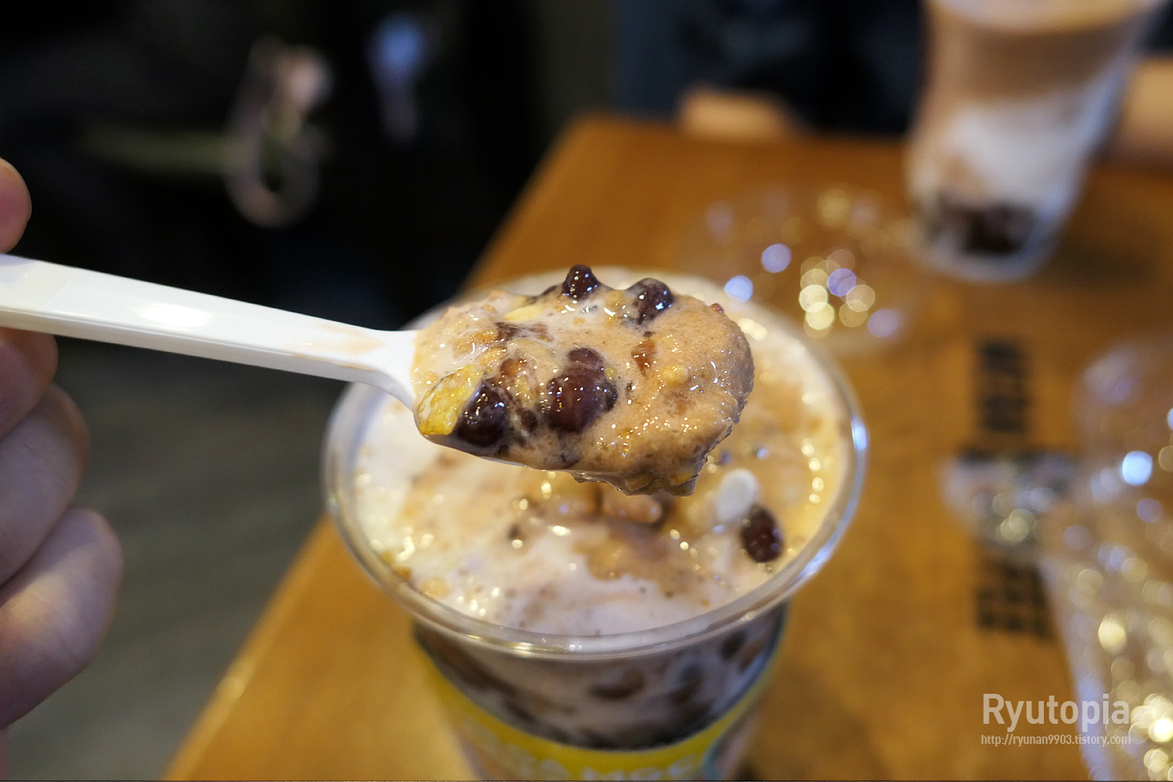 이 음료는 빨대 대신 스푼을 함께 내어주는데, 팥빙수처럼 위에서 떠먹어야 하기 때문.