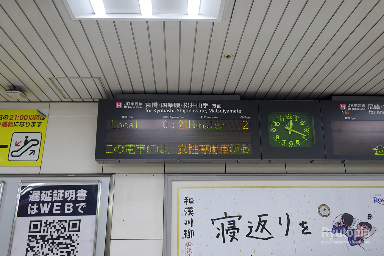 슬슬 토자이선 막차시각이 되어 조금 서둘러 나와 뛰...진 않고 약간 빠른 걸음으로 계단을 내려갔음.