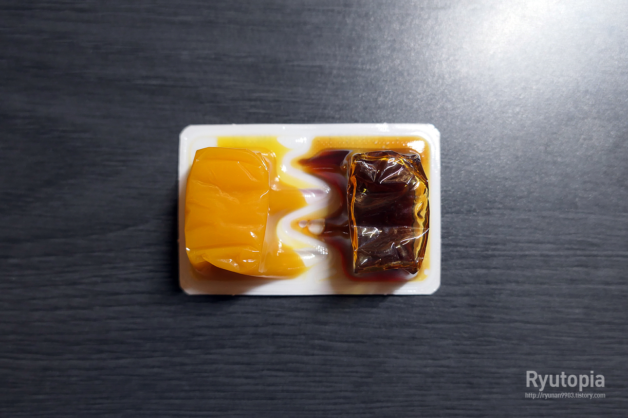 안에는 이렇게 한쪽엔 계란노른자, 한쪽엔 간장이 들어있어요.