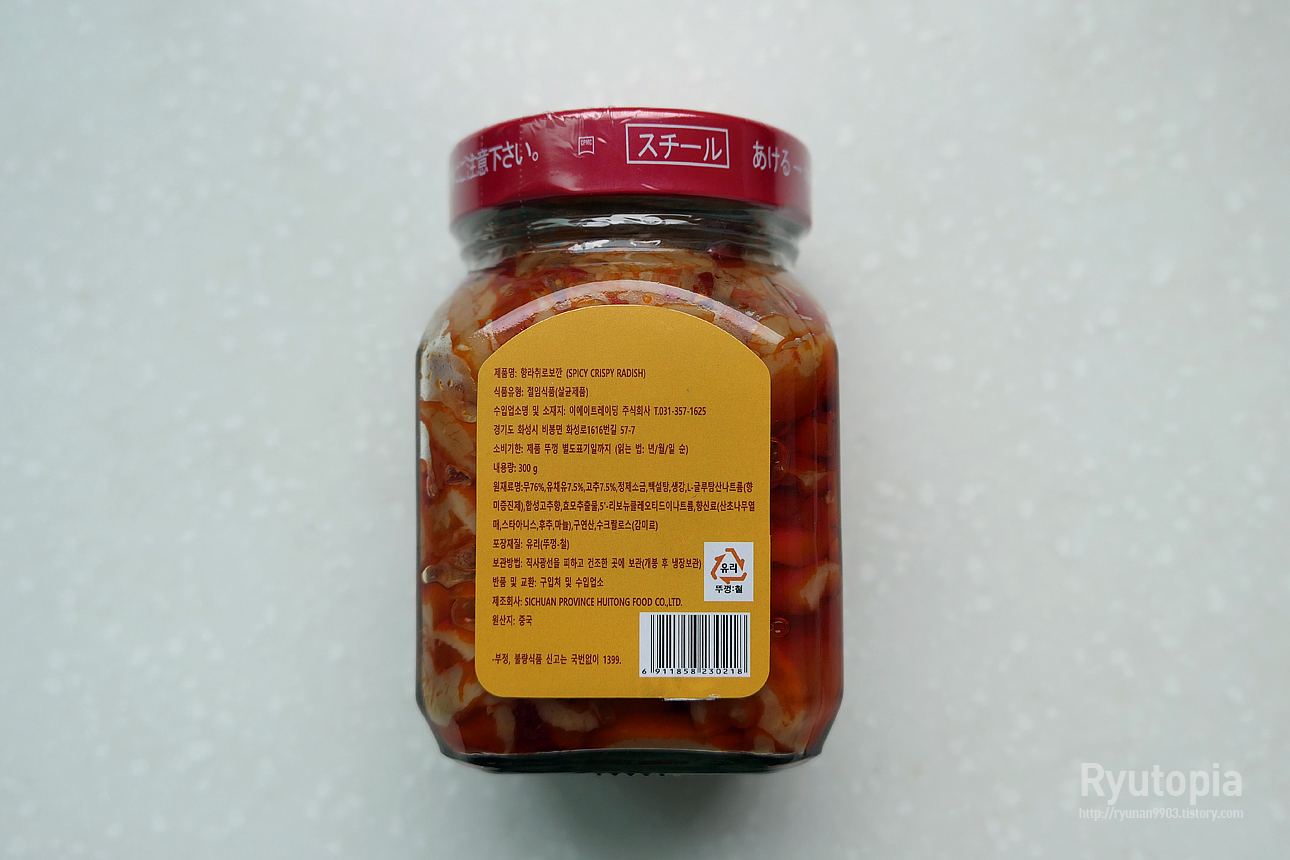 제품명이 '향라취로보깐(香辣脆蘿蔔幹)' 이라 표기되어 있는데, 해석하면 '매콤하고 바삭한 말린 무' 라고 한다는군요.