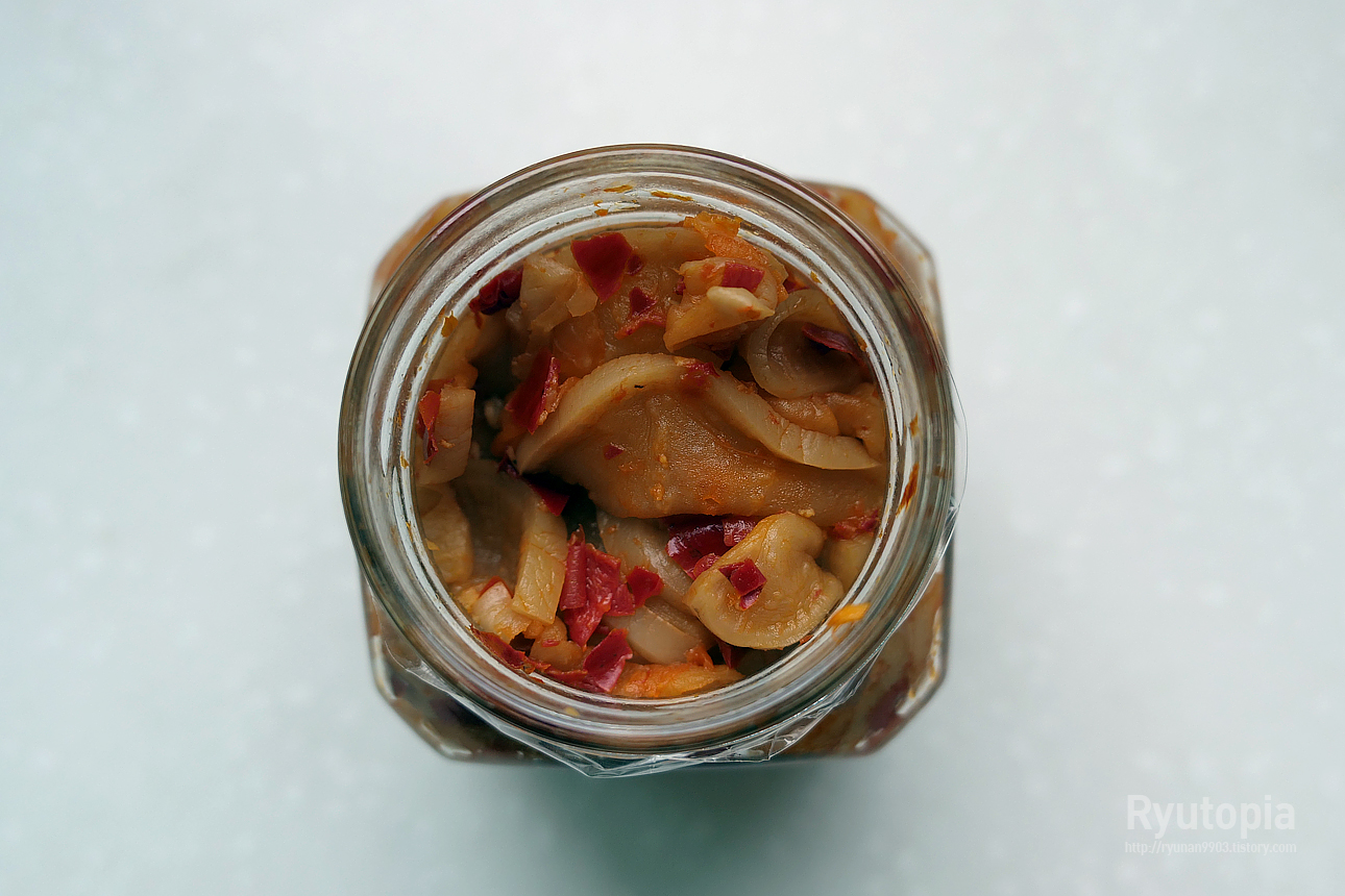 가볍게 밑반찬으로 구비해놓으면 딱 좋을 듯 합니다. 혹은 술 마실 때 배부르지 않은 안주로 이것만 그냥 먹어도 좋을 듯 하고요.