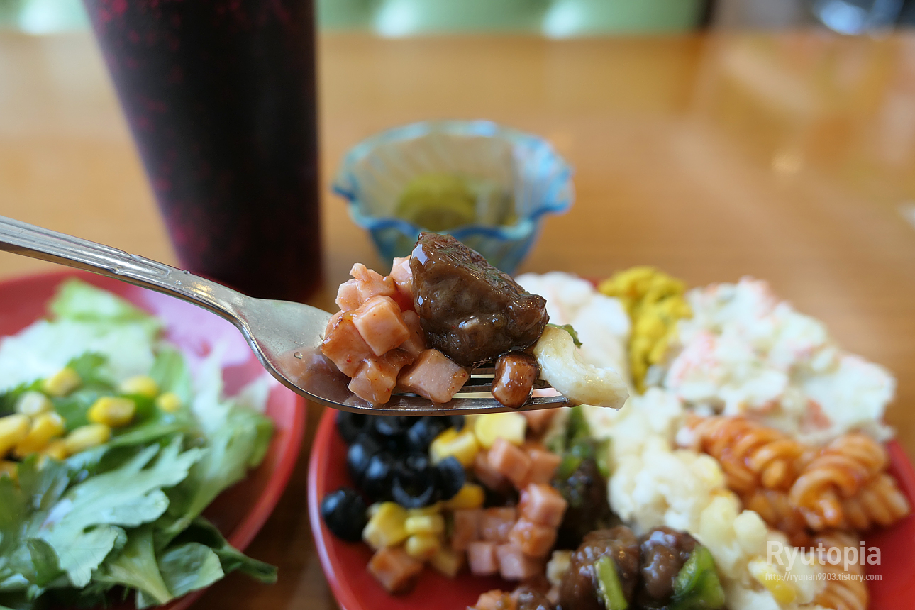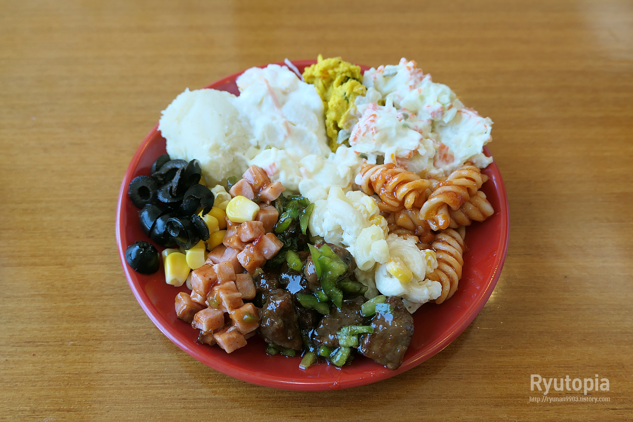 일단 피자 나오기 전에 샐러드바를 들러 좀 담아왔습니다.