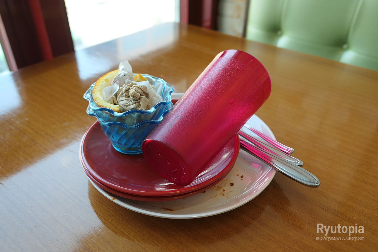 나중에 가져가기 좋게 그릇만 깔끔하게 정리한 뒤 나왔습니다. 여기 선불로 결제하는 거라 다 먹으면 바로 나가면 됩니다.