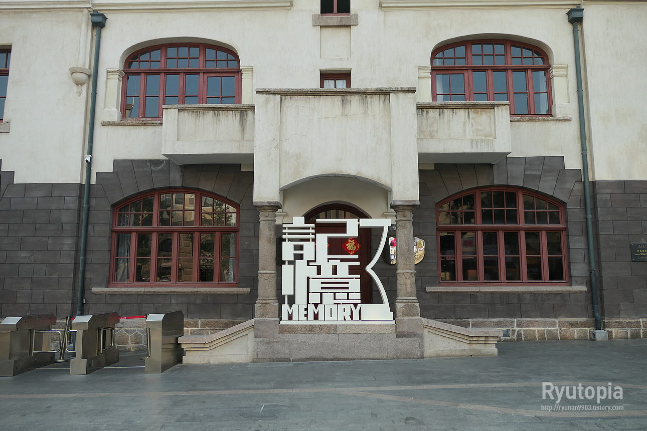 칭다오 구시가지의 건물 곳곳엔 이렇게 붓글씨 간판으로 '칭다오(青岛)' 라 써 있는 포토 월이 여럿 존재하고 있다.
