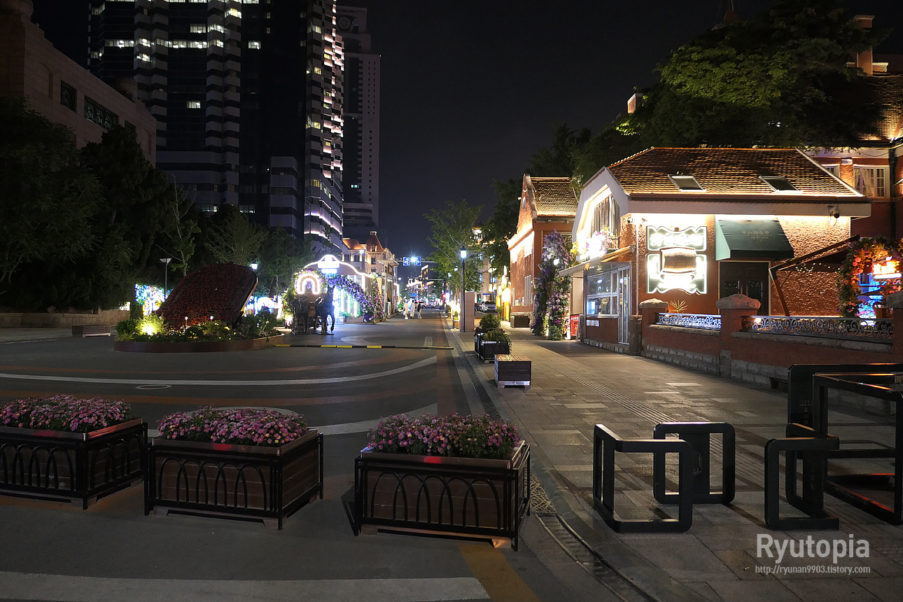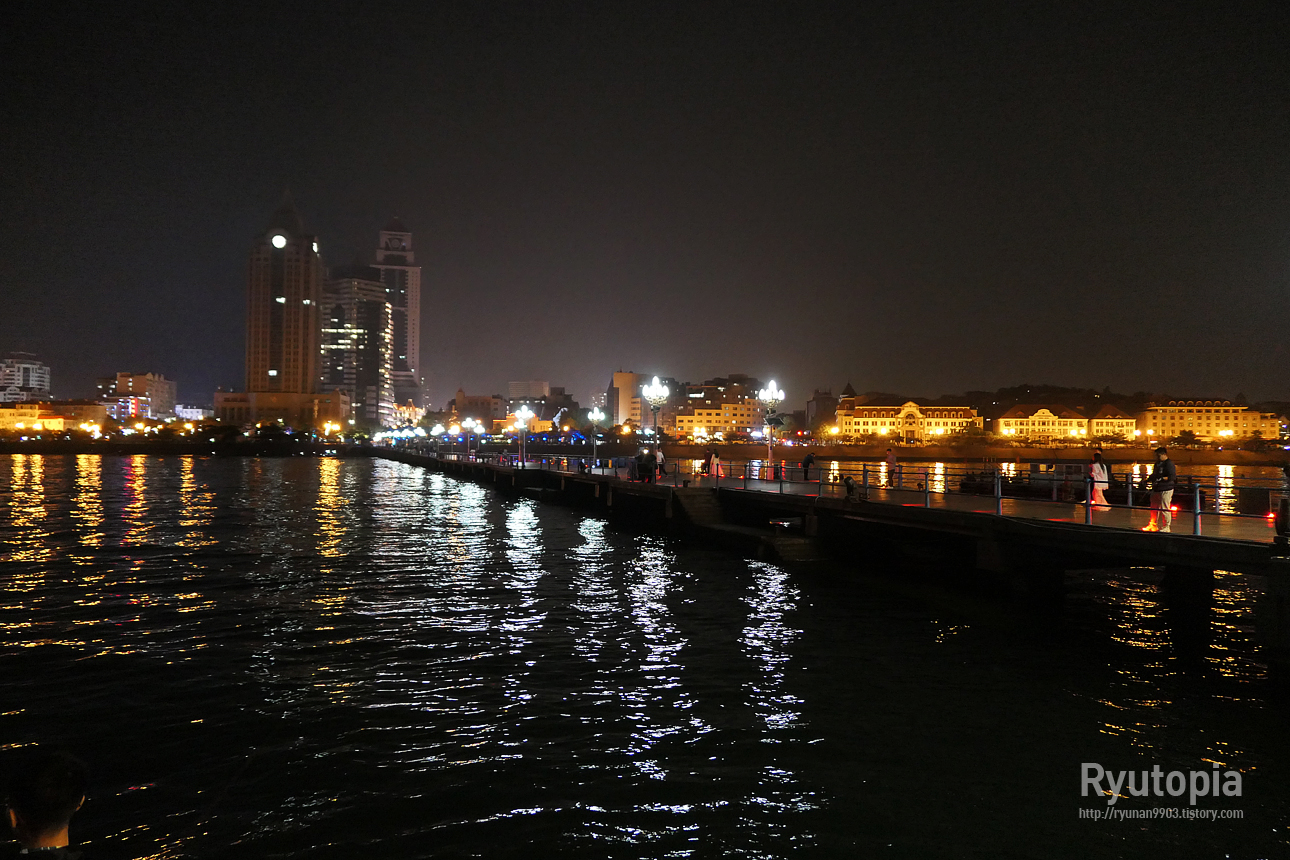 잔교 입구에서 바라본 칭다오 구시가지의 야경.