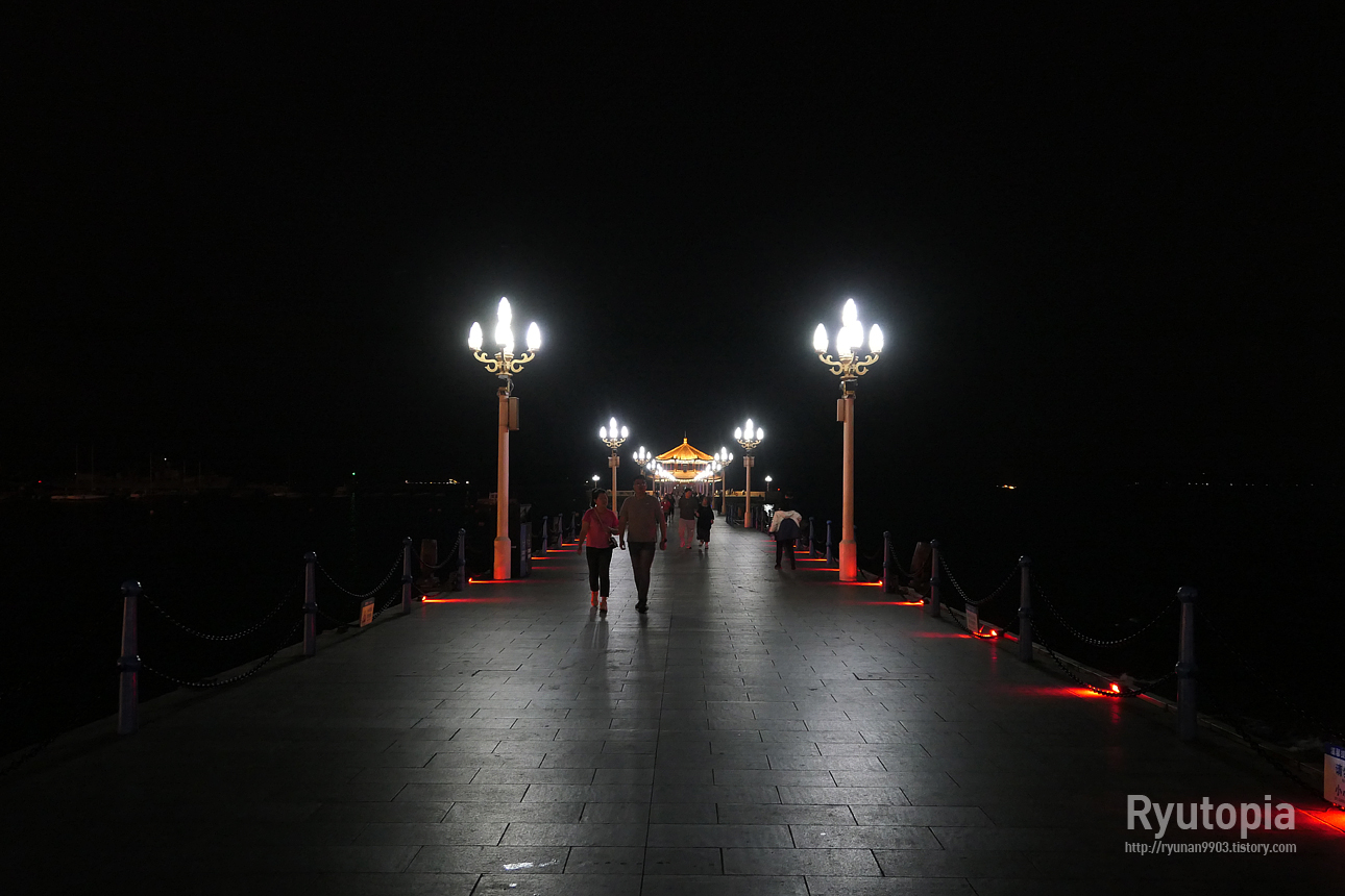 가로등 불빛에 의지해 잔교를 따라 쭉 걸어간다.