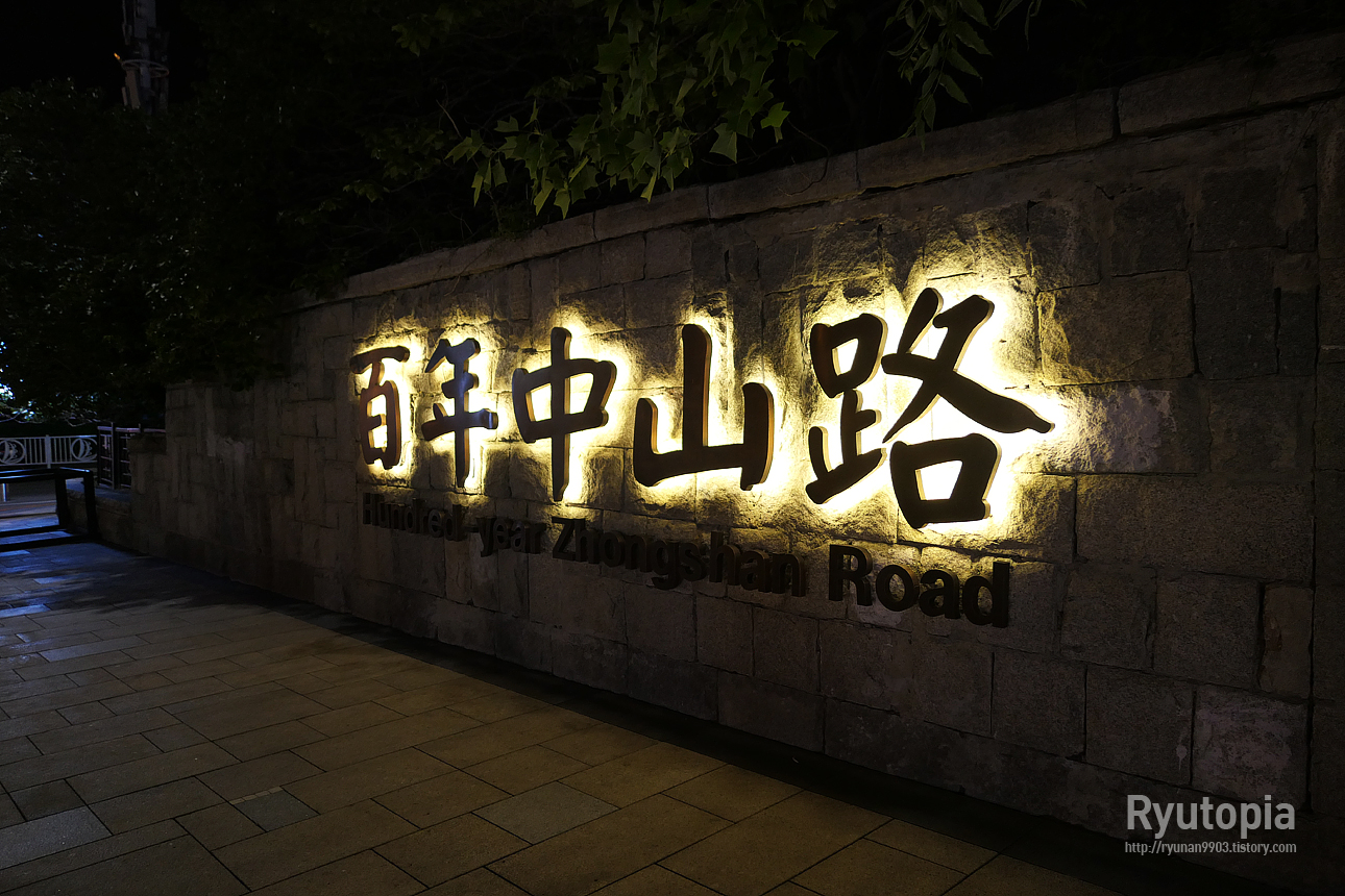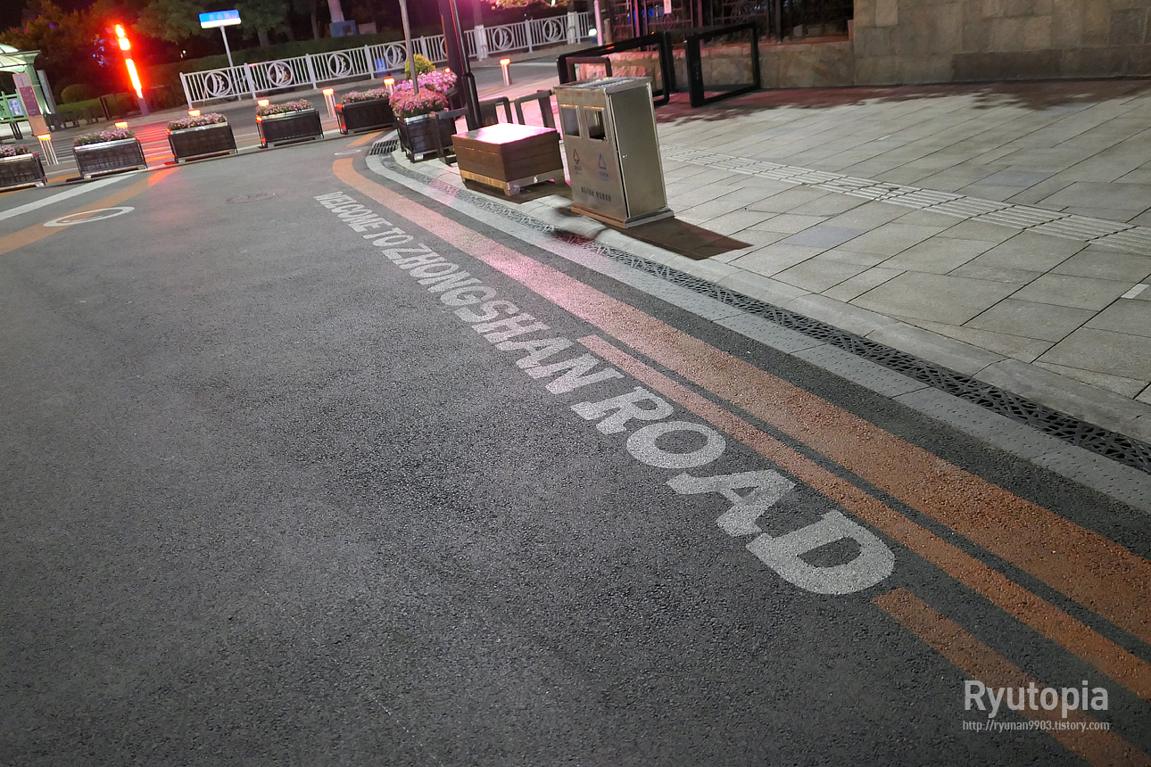바닥에 써 있는 'WELCOME TO ZHONGSHAN ROAD' - 중산로에 온 것을 환영합니다, 라는 글씨.