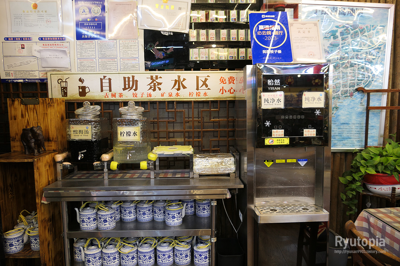 물이라든가 기타 음료는 음식이 있는 코너가 아닌 출입구 근처에 있는 정수기를 이용하면 된다.