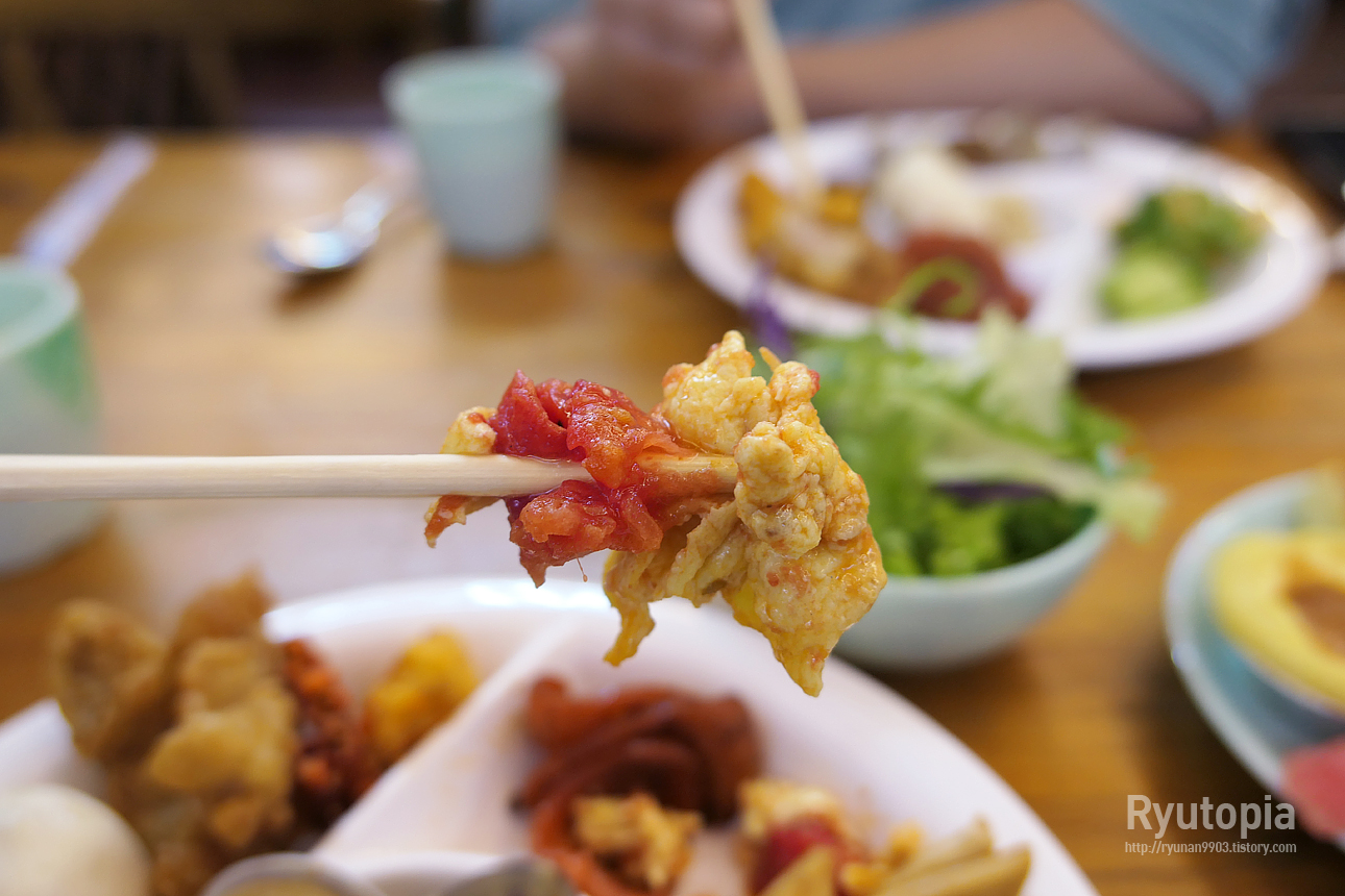 양꼬치 전문점에서 단품 요리로 파는 토마토 계란볶음을 여기서는 가벼운 밥반찬으로 즐긴다.