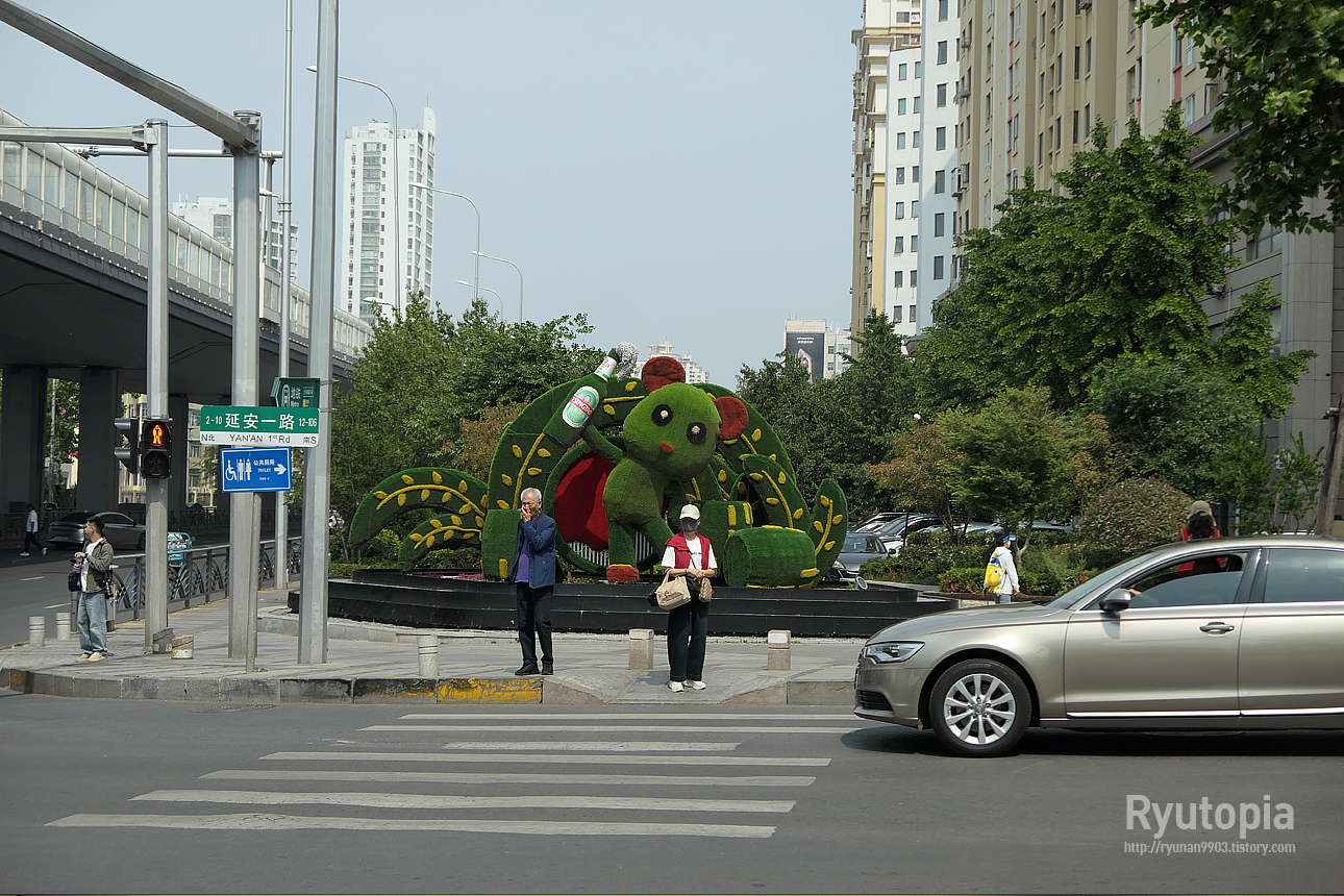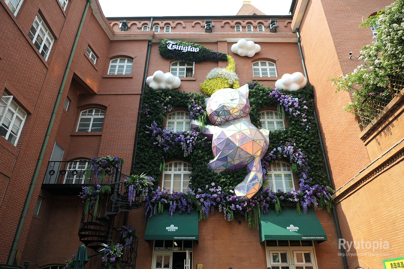 칭다오 맥주 들고 있는 곰? 쥐? 잔디 조형물이 설치되어 있는 이 곳.
