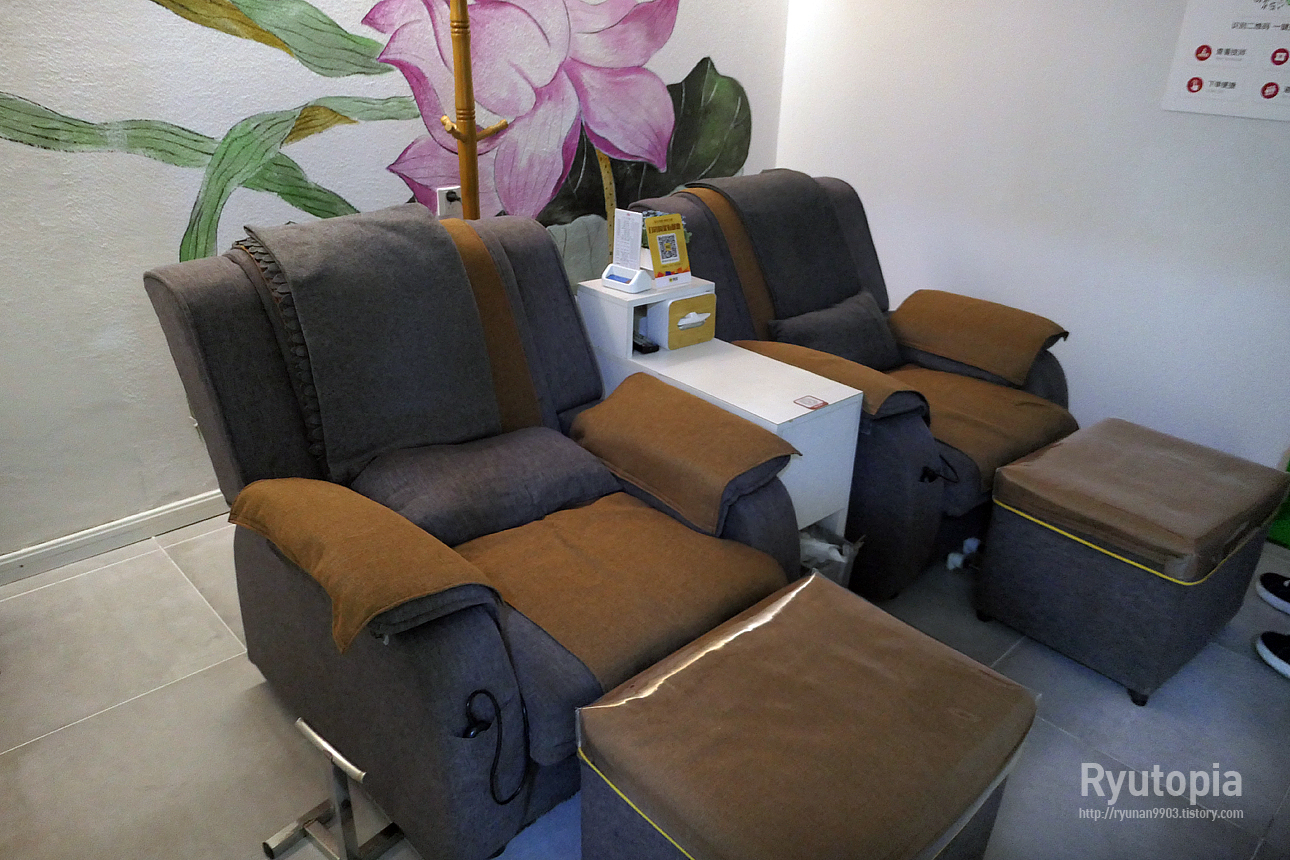 참고로 우리는 55위안(약 11,000원)짜리 코스를 선택, '足疗(발마사지)' 를 골랐다. 시간은 약 35분 정도로 짧은 편.