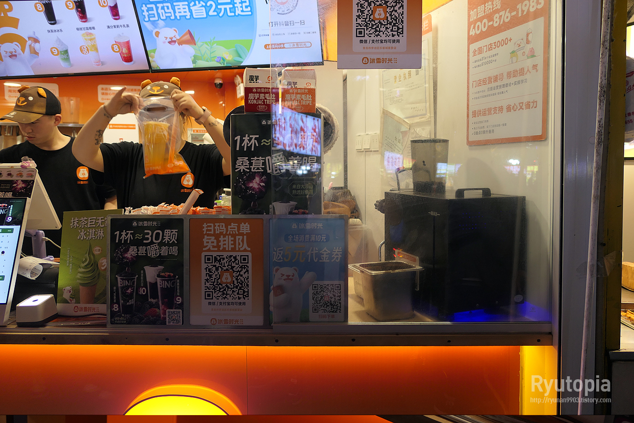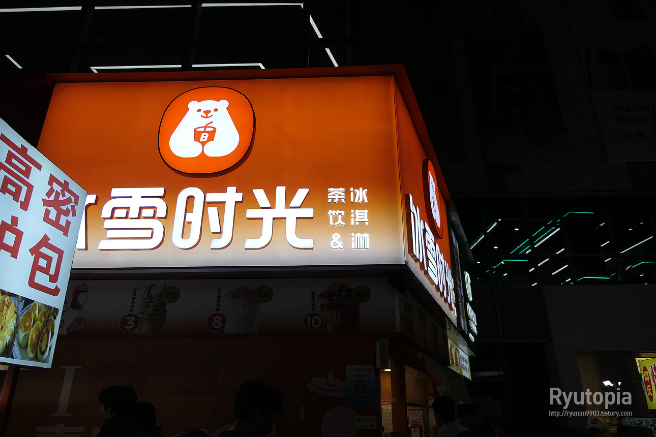 어제 타이둥 야시장에서 3위안짜리 녹차 아이스크림 콘을 먹었던 '빙쉐시광(冰雪时光 - 빙설시광)' 이 여기도 지점이 있음.