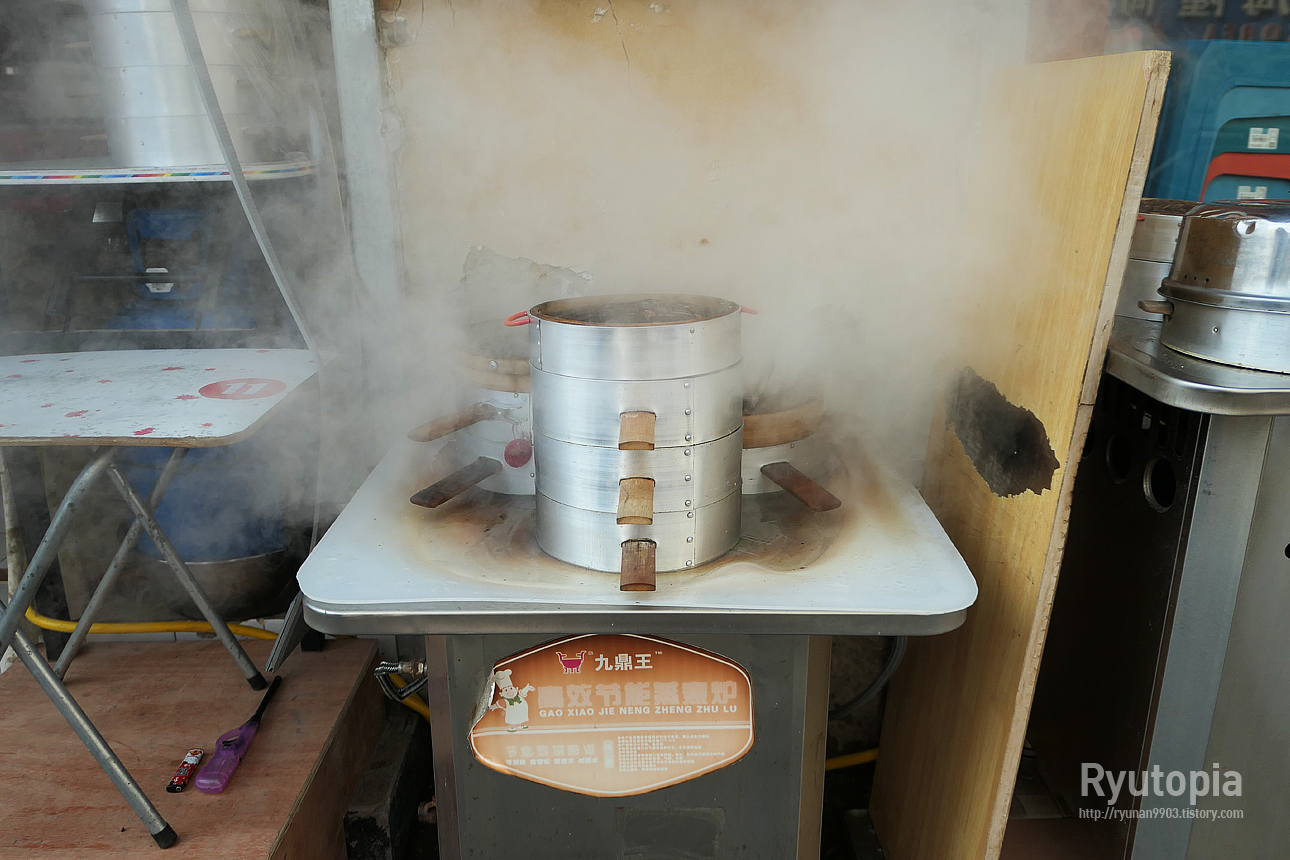 가게 앞 찜기에서 이렇게 무럭무럭 김을 내며 만두가 쪄지고 있는데, 이걸 안 먹고 넘긴다고? 있을 수 없는 일.
