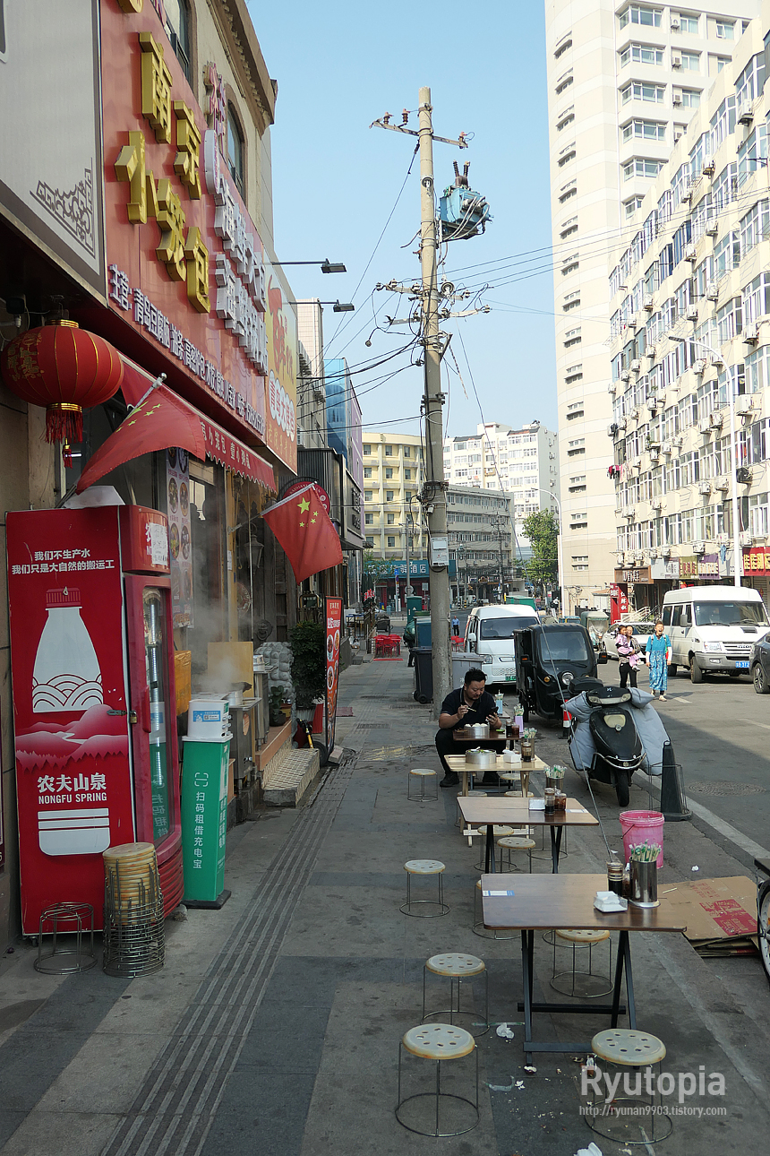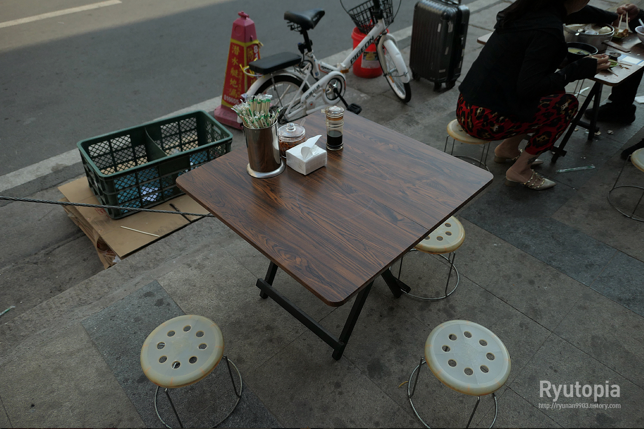 그래도 이 쪽은 둘째날 아침에 또우장 먹었던 가게에 비해 지나다니는 차량이 적은 도로 앞이라 꽤 한적했음.