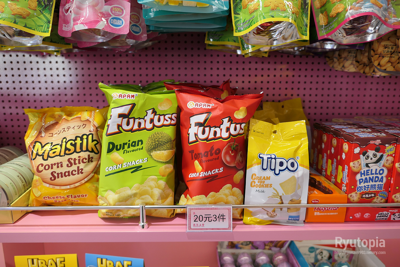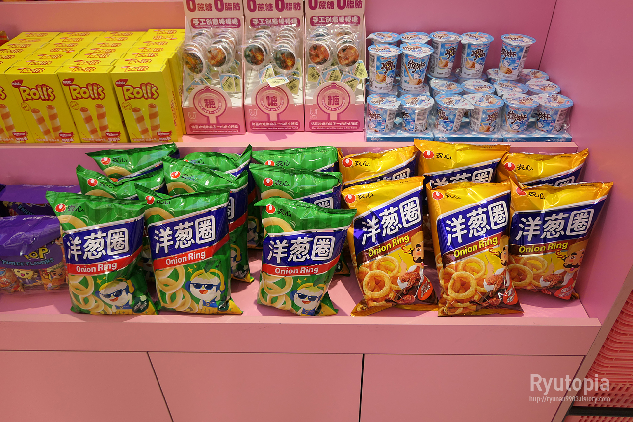 식품(과자)들도 함께 팔고 있었는데, 여기서 중국 수출판 새우깡을 처음 봄. 중국 수출판은 저렇게 생겼구나.