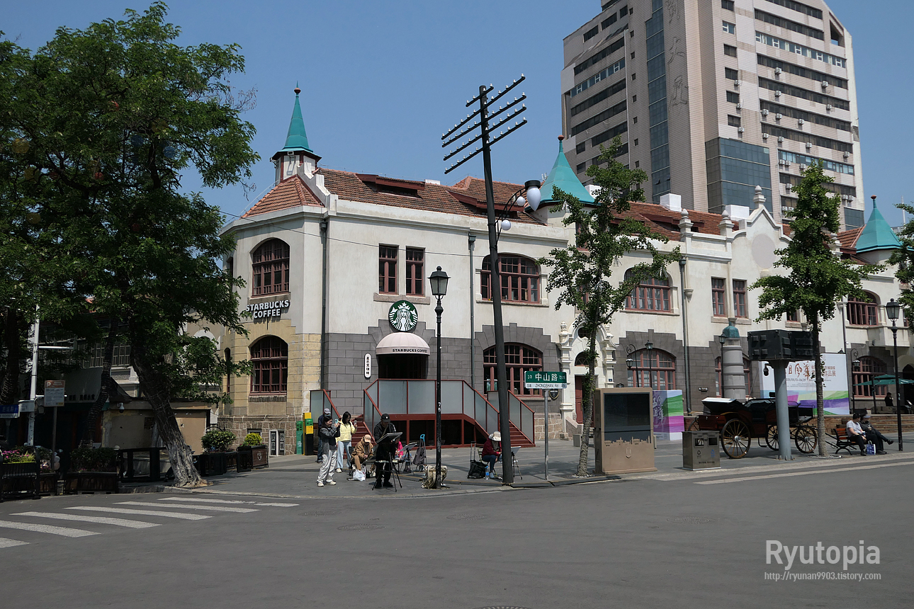 중산로 한가운데 스타벅스 매장이 하나 있다.